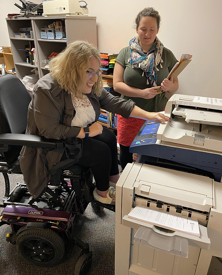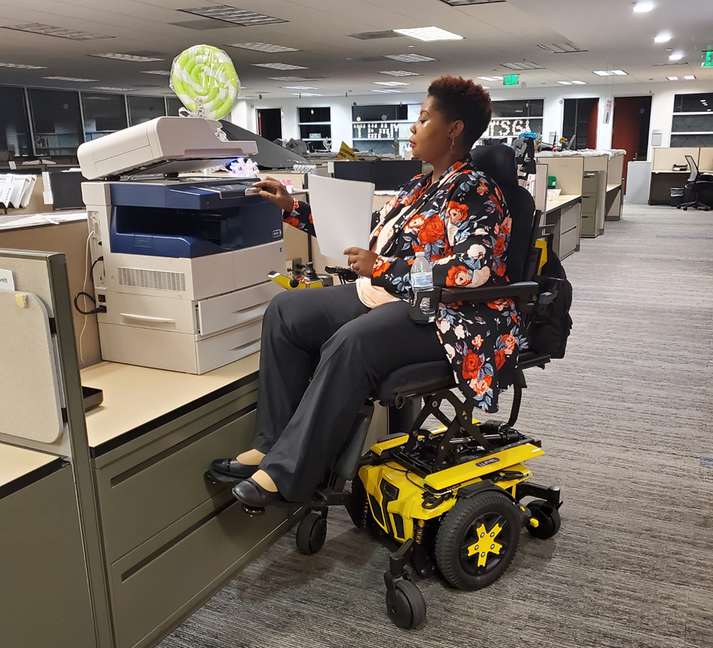 While an accessible building makes navigating her workplace easier, Merlisha also explains how her wheelchair, and iLevel in particular, help her in the day-to-day tasks. From reaching the copier to communicating with coworkers, she can perform many daily duties independently.