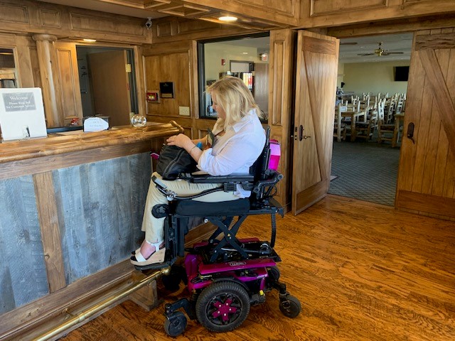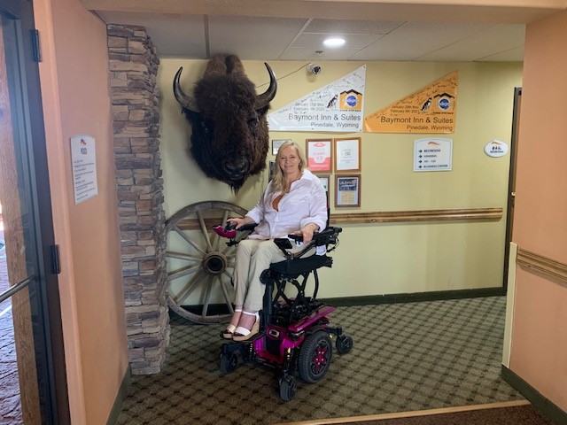 The hotel where we stayed had an interesting feature that is common to this part of Wyoming. Our hotel had a bison (or buffalo as most people know them) head on the wall. I had to take a picture to see how tall my iLevel Power Wheelchair was while sitting next to this beast. Never let their large appearance fool you. If you see buffalo in the wild, they’re not like cows out in the pasture. They are amazingly fast and protect their young. They should never be approached. I’m happy that the picture I took with this particular buffalo was on the wall and it was only his head and not the rest of him.