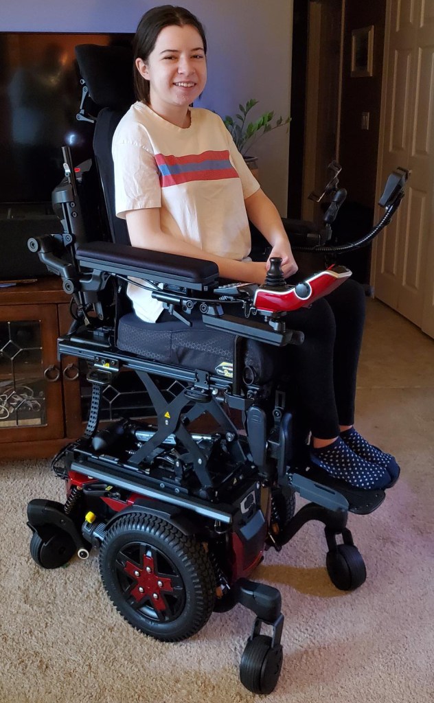 Riley loves the maneuverability and narrow width of her Stretto Power Chair.