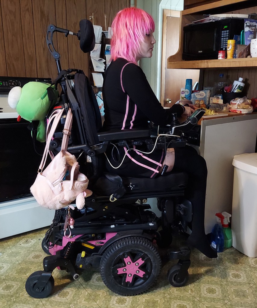 I’ve always loved cooking fresh meals for my life partner, but it was always a struggle maneuvering around my kitchen space in my manual wheelchair at the time. My manual wheelchair was a bit wide, so turning around in tight spaces was a pain. I had to carry things on my lap so that I could propel myself. Worst yet, it was a MAJOR struggle to reach the things in my kitchen that are high up, such as my microwave and cabinets. Even working on the counter tops was an uncomfortable struggle.