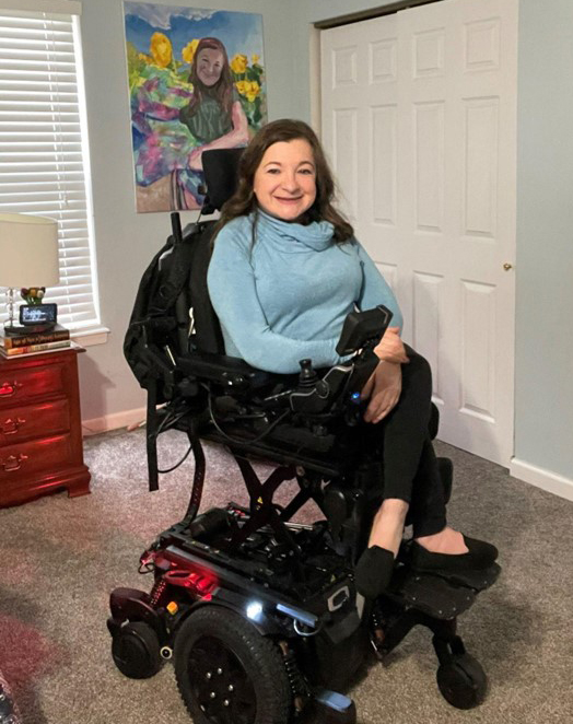 The “Unstopable” Project concluded with a gallery exhibit in Miami. COVID-19, unfortunately, squashed our hopes to get together in-person but we each connected with our artists. Al Kittle, an artist in New Mexico who uses a power wheelchair, painted my portrait. Check out her work here. The colors and cameo of my service dog, Rocky, made me love my portrait instantly but my favorite part is harder to see. There are fine, dark lines in the arms that resemble my curvy bones. I used to hide my bowed arms but now embrace them as me.